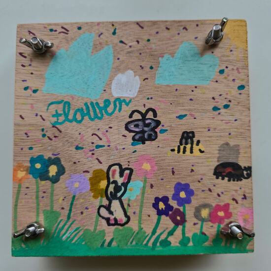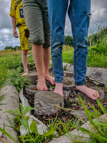 Doch wir stellten nicht nur Blumenpressen her. Aufgrund des durchwachsenen Wetters blieb viel Zeit für Kreativität. Ganz begeistert wurden Nagelbilder, Windspiele, Bienentränken und vieles mehr gestaltet. Während unserer Ausflüge in den Wald und zur Gieselau sammelten wir Steine, die dann zu kleinen Kunstwerken wurden.