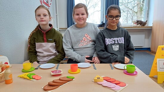 Die Kinder der Wulf-Isebrand-Schule freuen sich am Standort Albersdorf über eine großzügige Unterstützung der Bildungskette Dithmarschen für die Spielküche und den Einkaufsladen im „SoKo-Raum“.